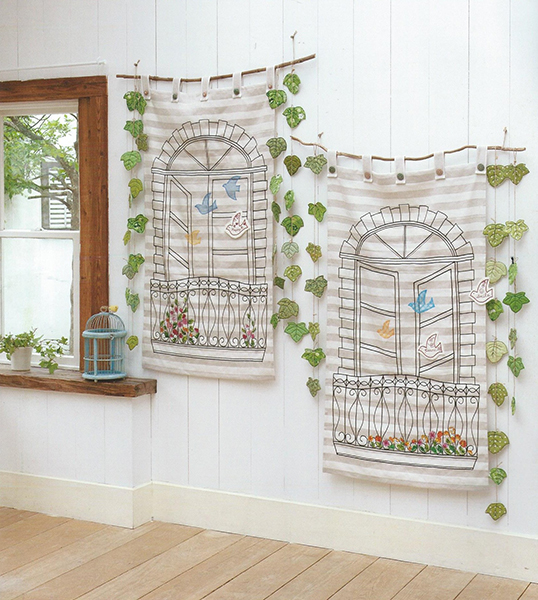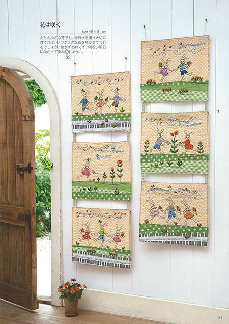 今回の個展も、近作を中心としたキルトに、楽しさあふれる小物を加えて、くつろぎと幸せを感じられる空間を目指しました。